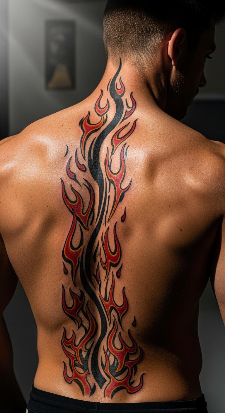 Abstract flames show inner fire. Sketch swirls at home—simple and free. Seek sessions for $115. Focus on spine curve. Apply daily oil from your shelf. This ink amps confidence with abstract energy. Use apps for custom ideas. Choose bold shades. Heal step by step.