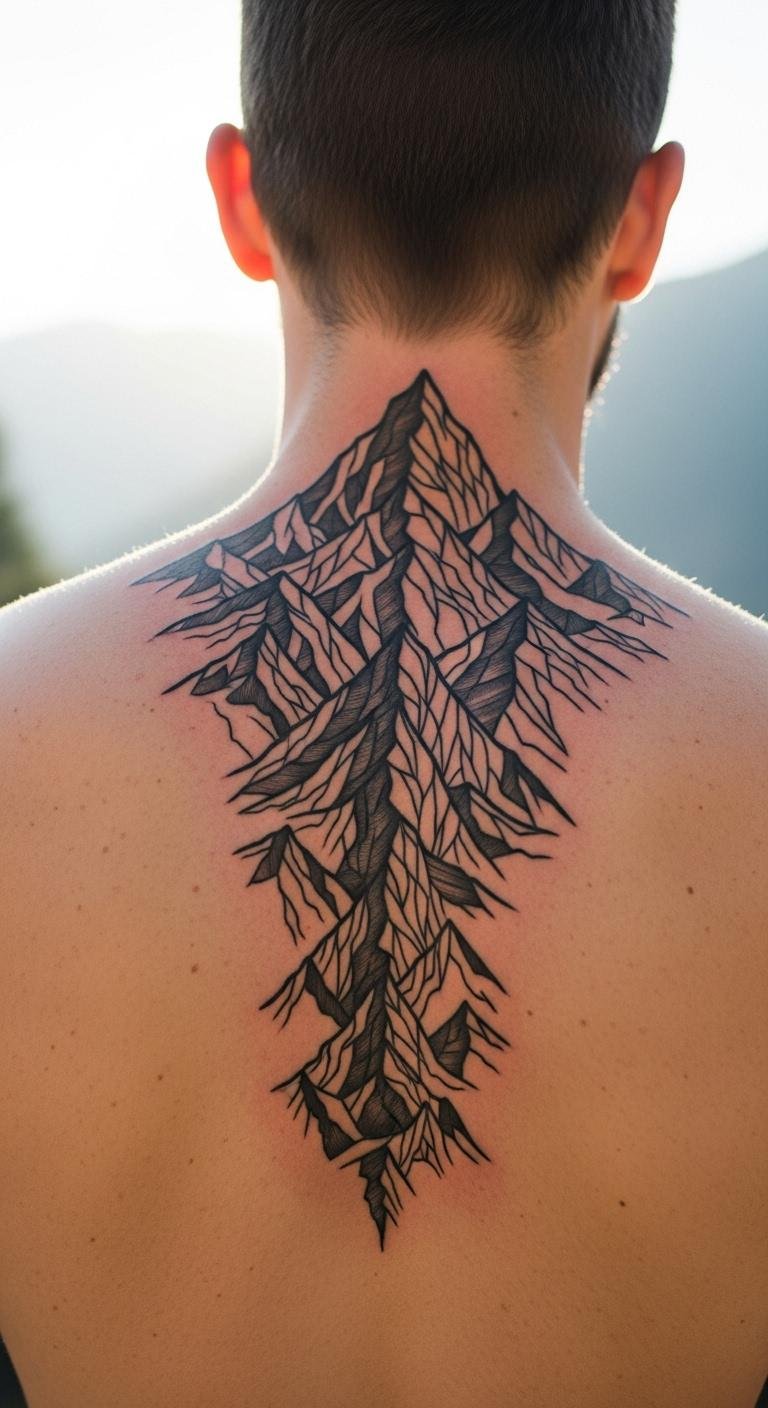 Mountain ranges depict adventure and peaks. Draw hills on paper—easy at home. Find artists for $95. Line up with spine. Use a gentle rub for care. These designs fuel confidence through exploration. DIY with landscape photos. Keep it straightforward. Protect during activities.