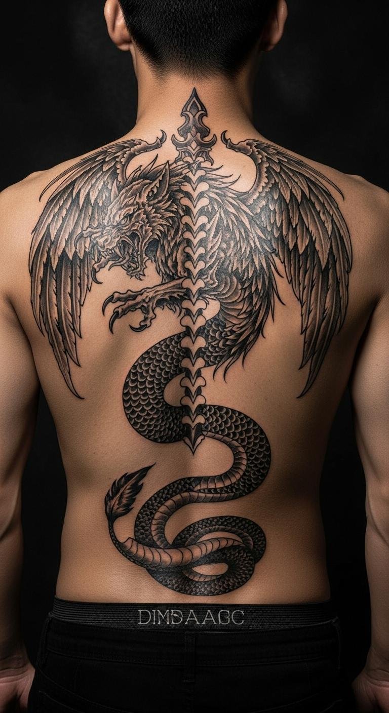 Dragons represent power and protection on your spine. Draw a basic dragon outline at home with pencil and paper—try free online tutorials. Find an affordable artist through community forums for under $200. Stick to black and gray shades to keep costs down. Place it along the spine for maximum impact without needing extra space. Use household lotion like coconut oil for aftercare—rub it on gently each morning. This tattoo boosts confidence by evoking ancient strength. Add personal twists, like a tail wrapping your side, using DIY stencils from cardboard. Aim for a quick session to fit your schedule. Keep the design clean and bold for easy maintenance.