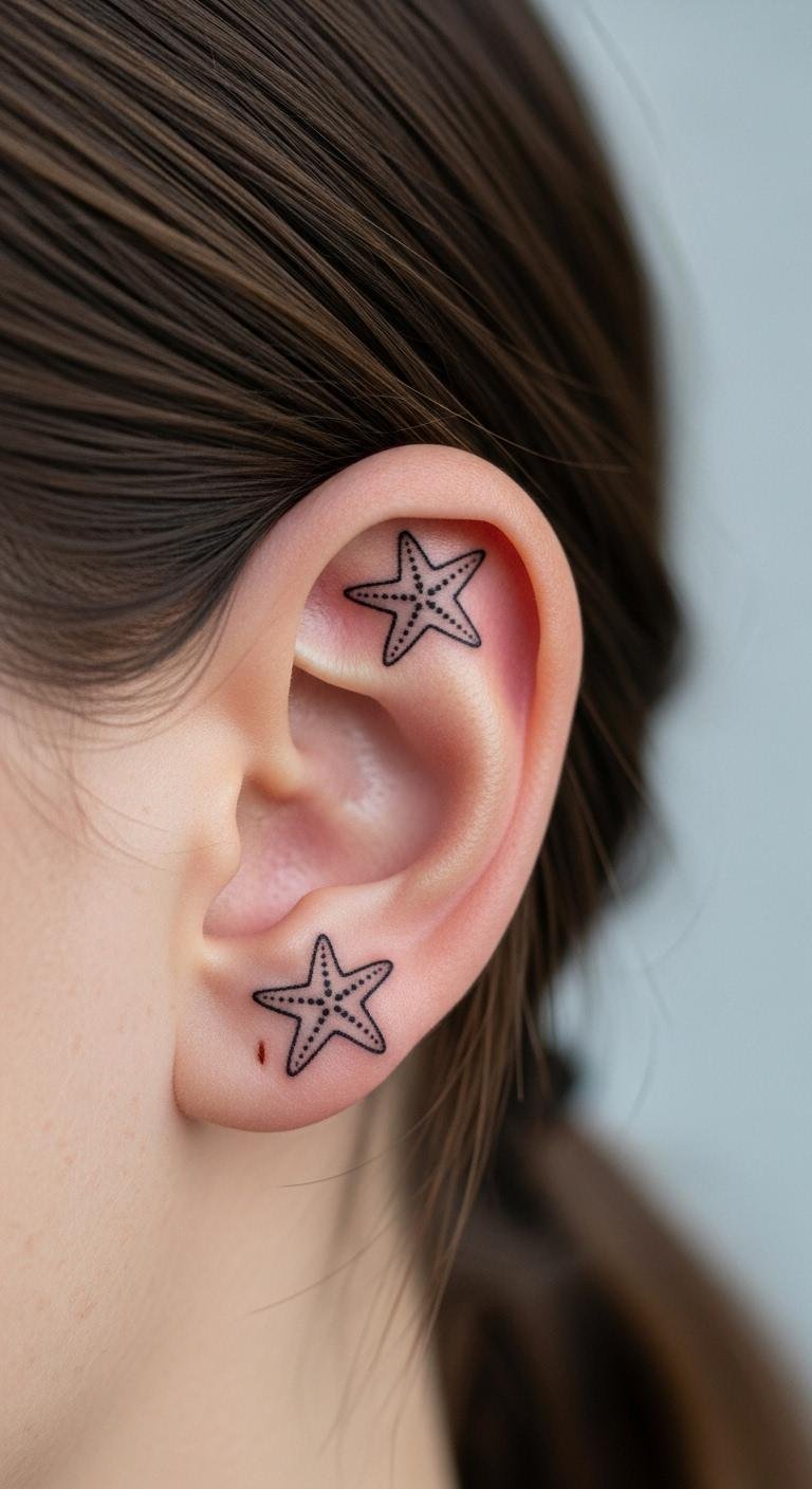 A small one behind the ear is discreet. It adds a secret touch. Use a pen to plan at home. Price: $30. Bold the key: small starfish. Avoid sleeping on it initially.
