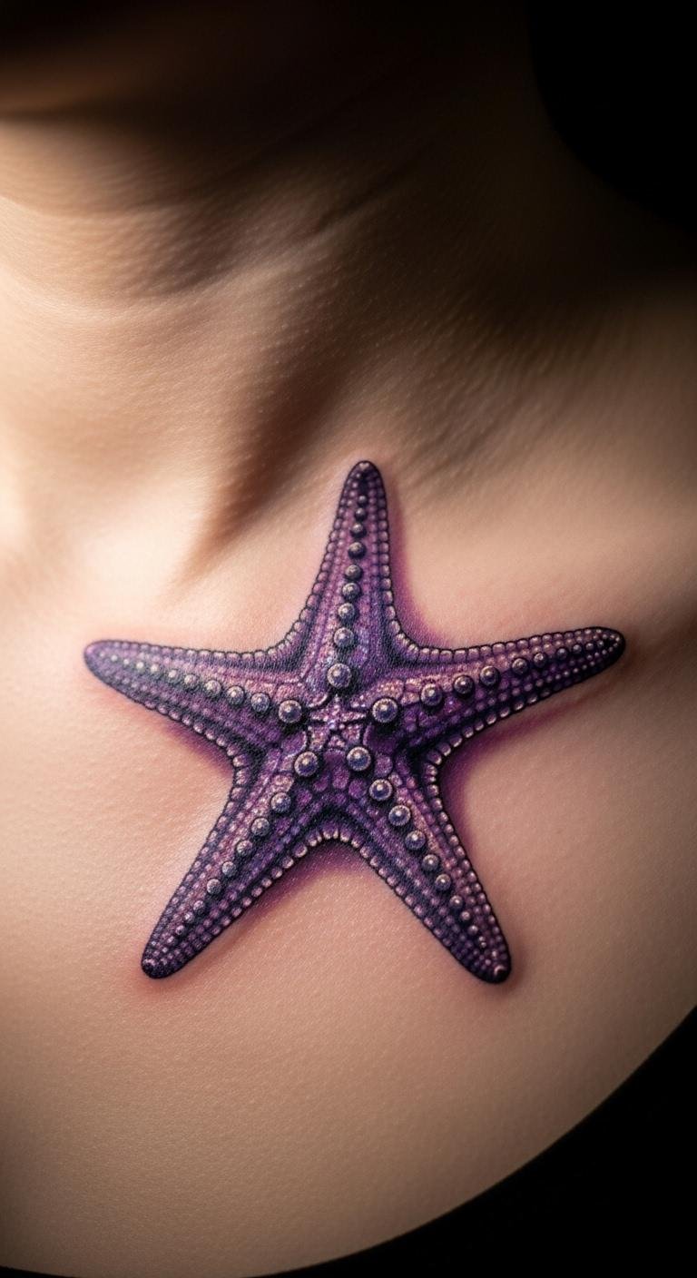 Purple evokes mystery in starfish designs. Try it on your collarbone for elegance. This color hints at deeper meanings. Practice with purple markers on paper first. No fees involved. Artists offer it for $75. Add stars around for a full theme. Bold the key: purple starfish. Apply sunscreen to maintain color. Quick steps ensure longevity.