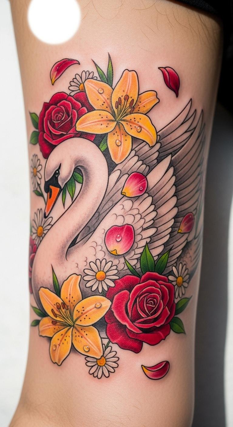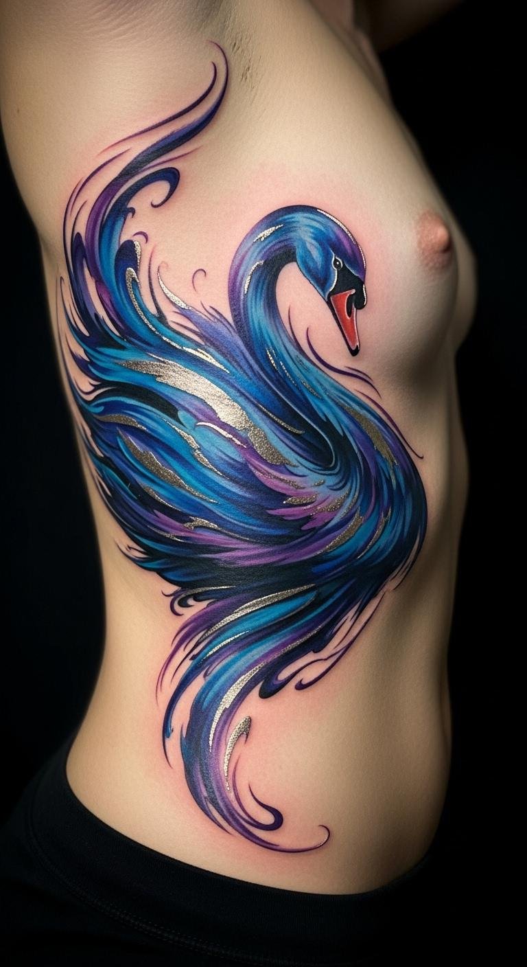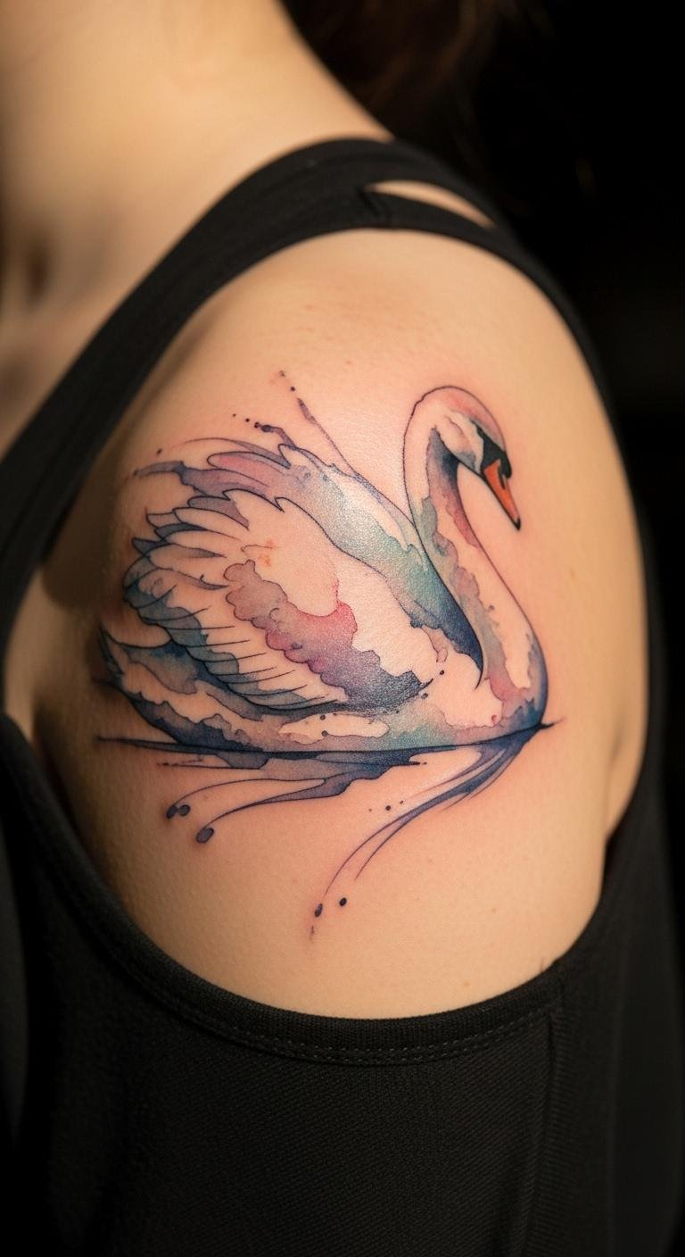 Go for colors that flow like paint. A watercolor graceful swan mixes soft blues and pinks for a dreamy feel. Draw inspiration from nature photos online. Use watercolors at home to test the look on paper; it’s cheap and fun. Pick spots like your ankle for a hidden gem. This style highlights peace and new starts. Add a tiny flower element using free editing apps. Artists often have affordable packages around $100. Experiment with phone filters to see how shades blend. It’s an easy step to match your story. Focus on light areas to keep it fresh and personal.
