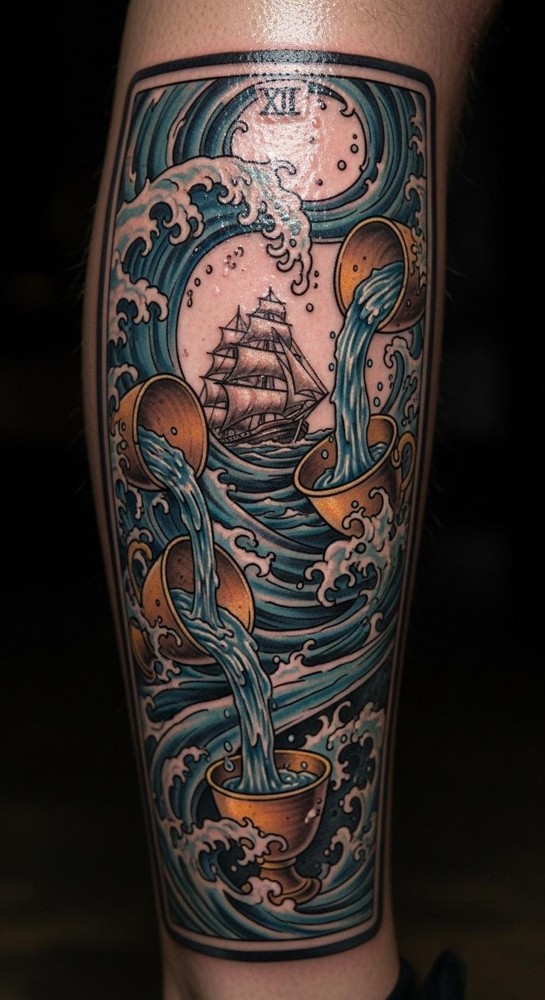 Water tattoos evoke deep emotions. Place it on your calf. Draw waves on paper. Use water effect apps. Seek water-specialist artists. Try water transfers. Keep it wavy. Blend in sea life. This design flows with you. Pick active spots. Adjust freely. Dive in.