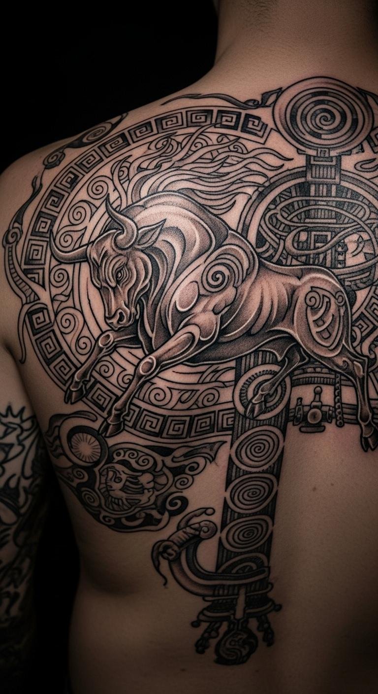 Bring ancient stories to life with a bull in action across your back, full of movement and history. Keep the lines bold but not overwhelming. Sketch the scene on large paper at home—no cost involved. Try it out with washable inks from your kids’ supplies. Place it where it stays hidden under shirts for daily life. Add elements like stars, drawn from free online images. Find budget-friendly artists online, with prices around $70. Break it down: plan the layout, practice drawing, and go for it. This tattoo tells your story affordably and simply.