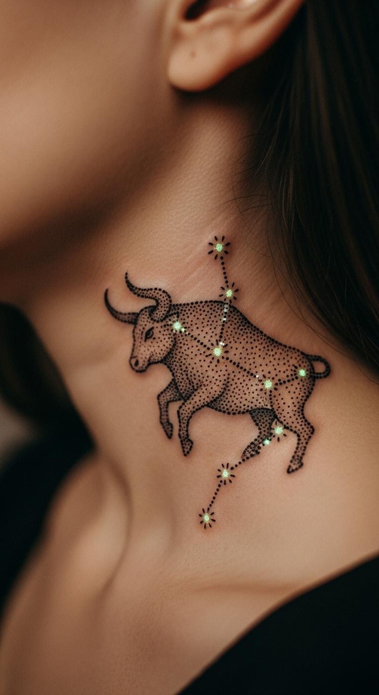 Dot stars to form a bull constellation on your neck, for a starry twist. This is discreet and celestial. Draw dots on paper easily. Try with dot stickers from home. Keep it small for collars. Add a personal star point. Look for $30 options. Simple: spot, dot, go. This idea shines brightly.