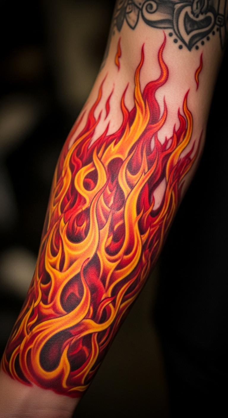 Fire tattoos signify passion and transformation. They burn bright and pure. Place it on your leg for energy. It ignites your drive. Get flame stickers for pennies. Sketch fires on paper. Find hot deal artists. Go with basic flames. Burn bright. This tattoo fuels ambition.