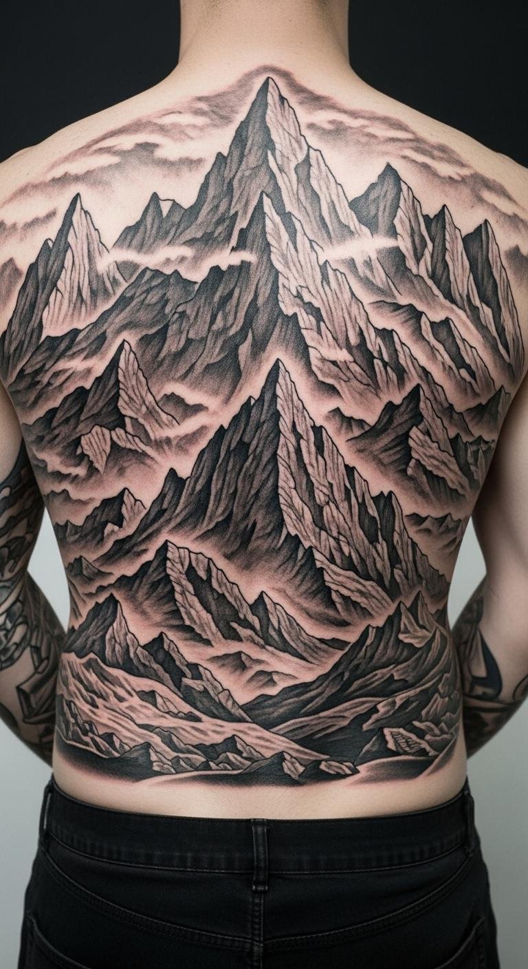 Mountain tattoos mean stability and adventure. They stand tall and firm. Try it on your side for scale. It grounds your spirit. Buy landscape stickers cheap. Draw mountains yourself. Search for nature sales. Opt for silhouettes. Climb on. This design anchors you.