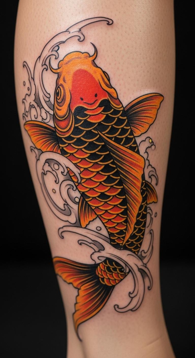 Koi fish tattoos symbolize determination and growth. They swim upstream against the current. Put this on your sleeve for a flowing effect. It helps you push through tough times. Get a stick-on version at a dollar store. Practice drawing fish shapes on paper as a fun start. Choose artists who do quick, affordable work. Opt for smaller sizes to cut costs. Keep your design meaningful. This tattoo reflects your journey.