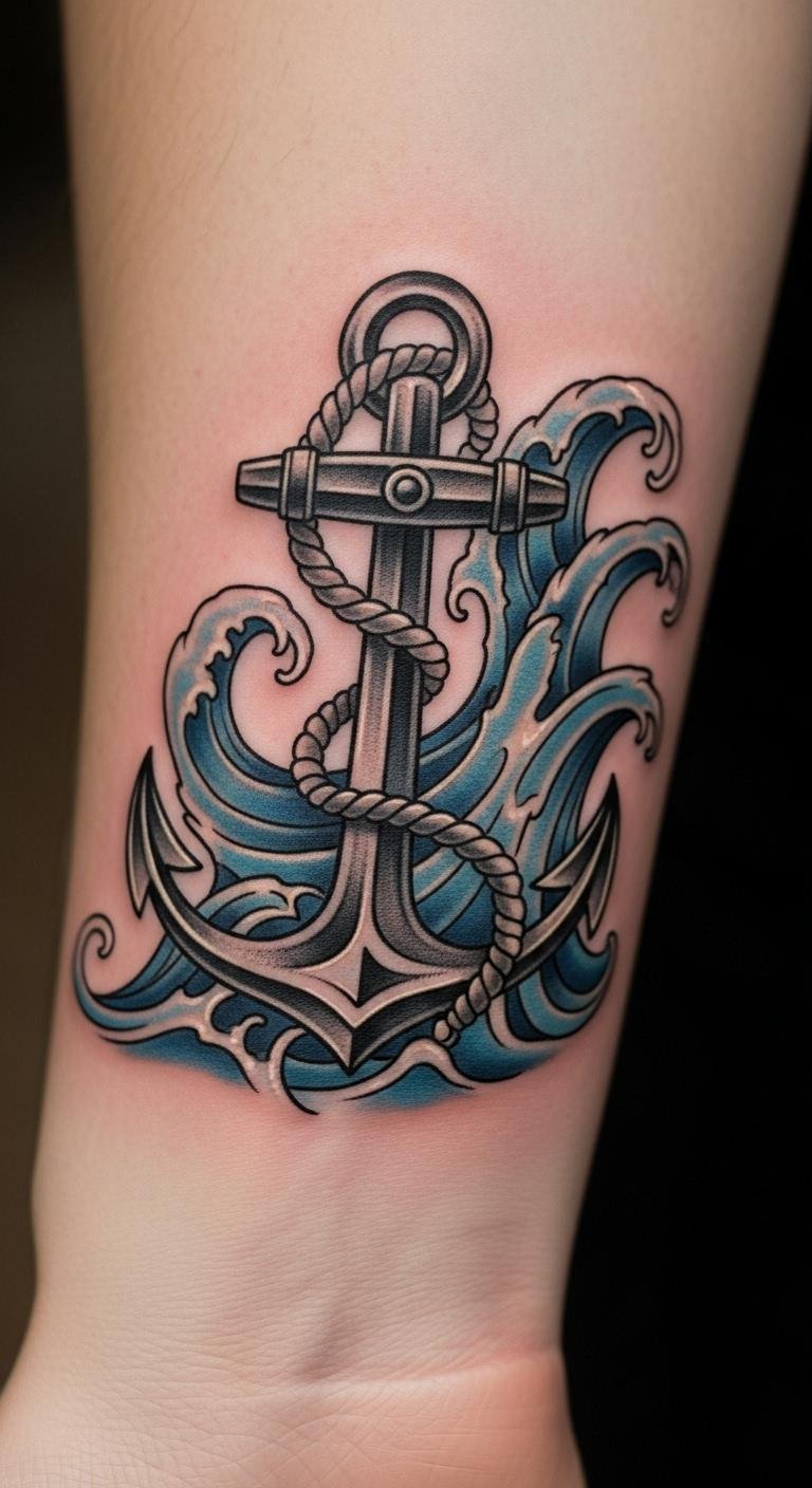 Anchor tattoos with waves show steadiness in storms. They hold firm amid chaos. Add it to your hand for grip. It keeps you centered. Use anchor stickers affordably. Sketch designs at home. Look for sea-themed offers. Choose compact styles. Hold fast. This tattoo provides balance.