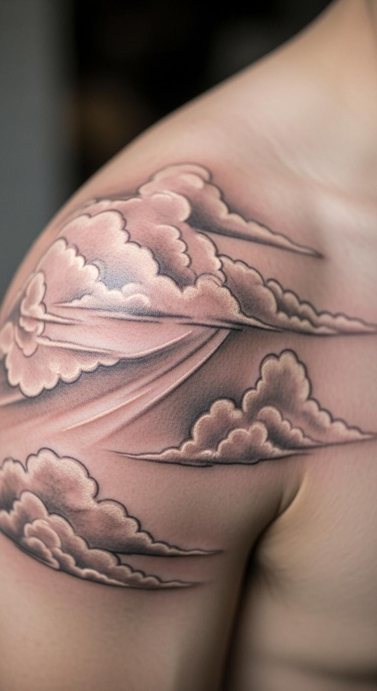 Cloud tattoos mean freedom and dreams. They float light and free. Place it on your neck for air. It lifts your thoughts. Get cloud stickers affordably. Sketch clouds quickly. Find sky artist offers. Go with wispy styles. Drift easy. This design frees your spirit.