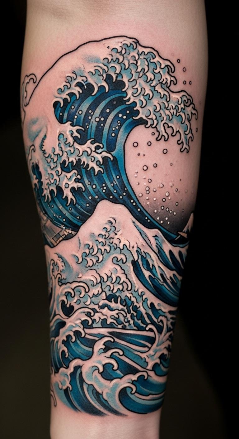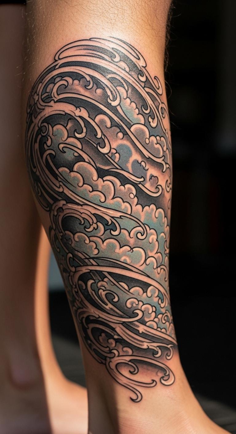 Wave tattoos represent flow and power. They crash with unstoppable force. Put them on your leg for movement. It helps you ride life’s waves. Get peel-off versions cheaply online. Practice wave sketches on paper. Find artists with walk-in options. Opt for outlines only to cut costs. Stay fluid. This design shows your adaptability.