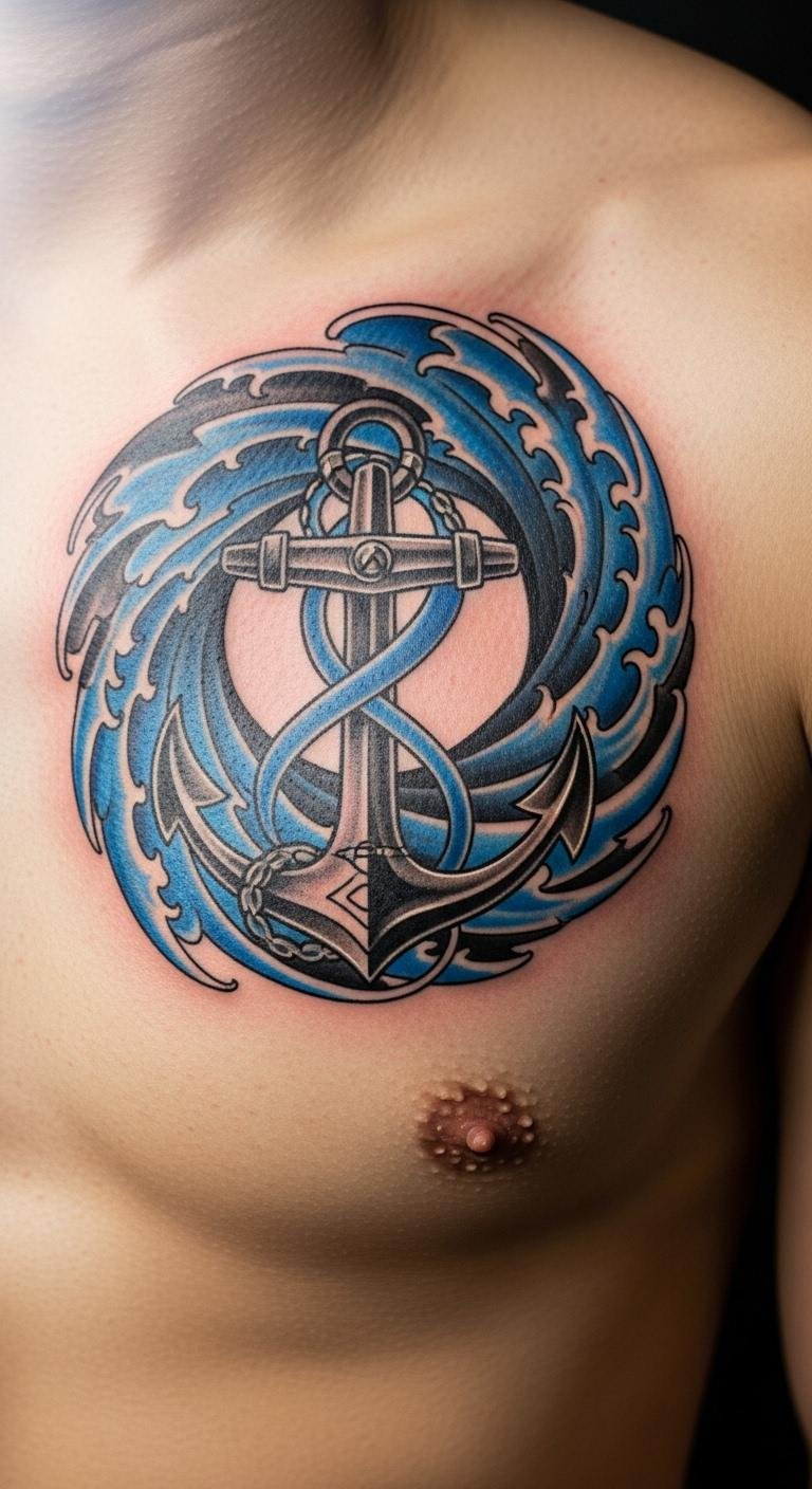 Wave and anchor tattoos show stability in motion. They blend flow and hold. Try it on your side for balance. It steadies your course. Buy combo stickers affordably. Sketch both at home. Look for paired offers. Opt for merged styles. Sail on. This design holds your ground.