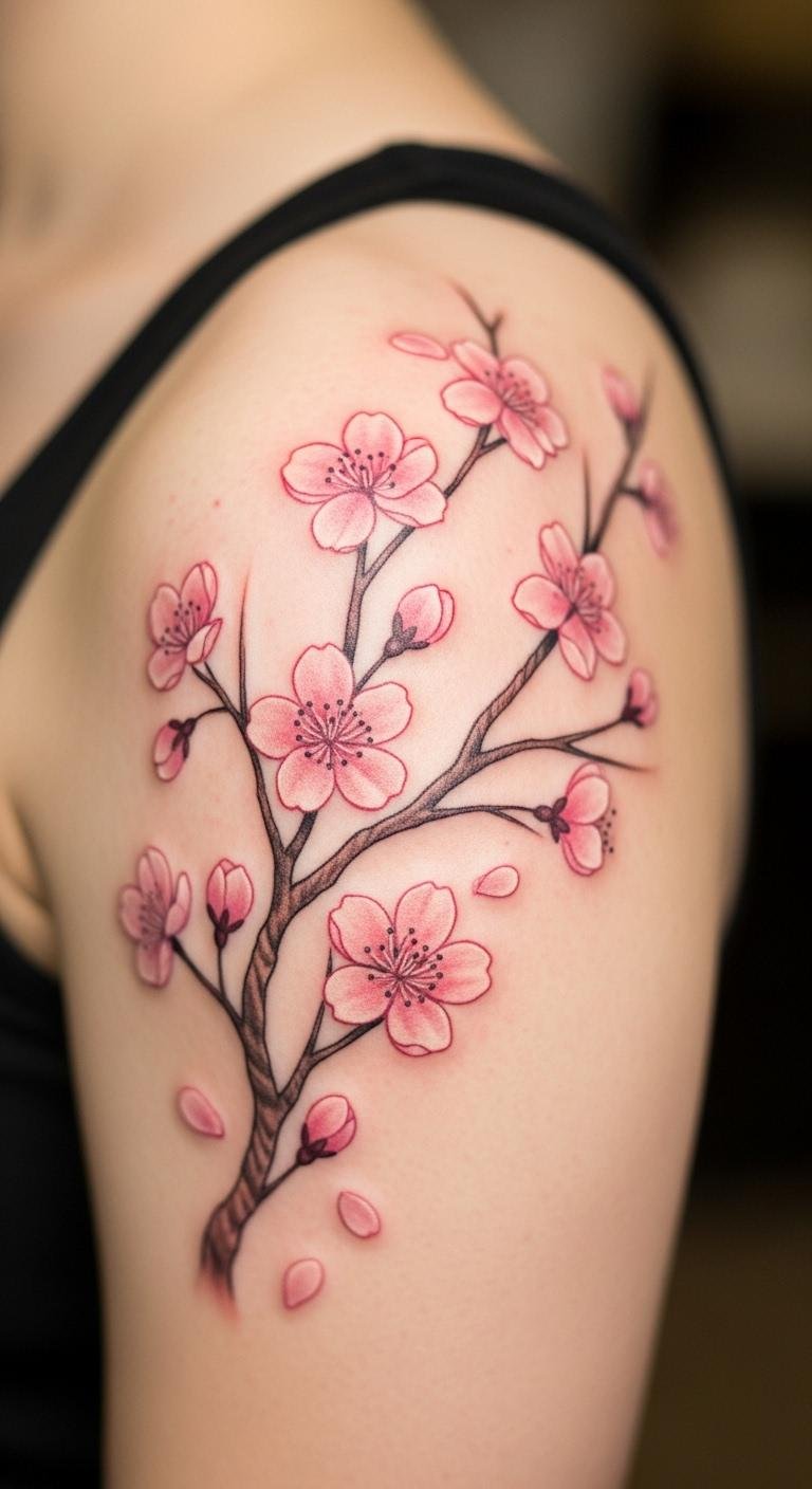 Cherry blossoms mean beauty and change. They bloom bright then fall away. Add them to your back for a poetic touch. It encourages you to live fully. Buy wash-off tattoos for a few dollars. Try coloring simple flower drawings at home. Find budget artists through community events. Go with black and white to keep prices low. Appreciate the moment. This design speaks of life’s fleeting beauty.