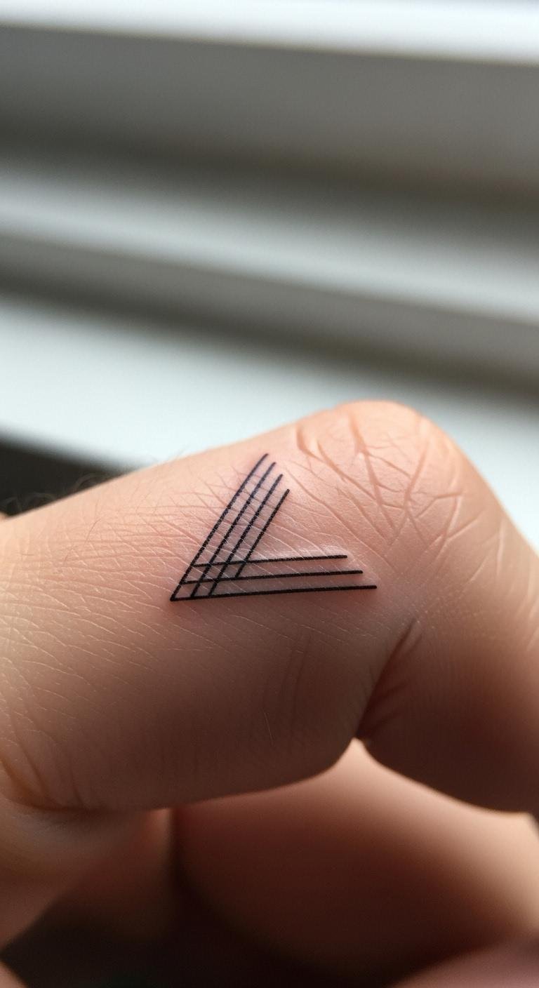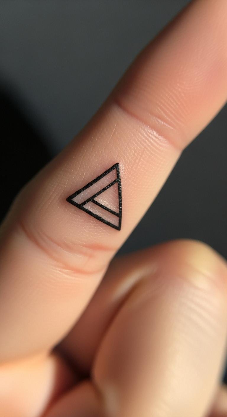 Think of a basic triangle as your go-to for quiet style. A single shape says a lot without extra fuss. Start with a small design on your wrist. Use a sketch app on your phone to draw it first. Keep costs low by visiting a local artist who offers walk-ins. Draw inspiration from everyday items like a book cover. This idea works for first-timers. Pick a spot that’s easy to hide. Add a personal twist, like a slight curve. Go for black ink to keep it timeless. You’ll love how it fits any outfit. Try practicing with henna at home for a test run. It’s affordable and washes off. Focus on placement for daily wear. A finger tattoo shows off without overwhelming. Remember, simple lines age well with basic care. Get one that matches your vibe. Use online tools to size it right. This design sparks balance in your life.
