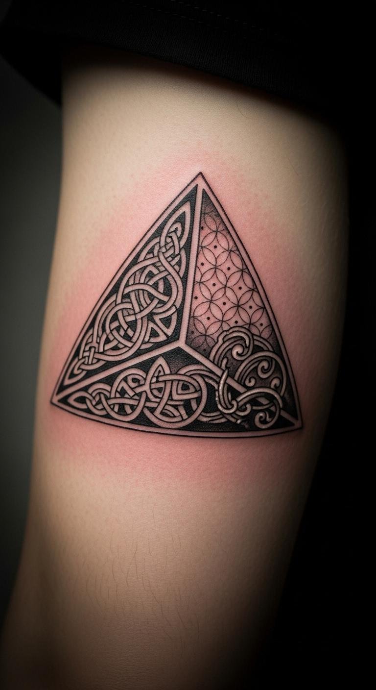 Hybrid triangles fuse future and past. They mix tech with tradition. Combine elements digitally. Seek modern fusion deals. Build with mixed media. Forearm spots show progress. Layer for interest. This pushes boundaries. Add metallic shades. It’s exciting and new. Test with overlays. Forearm tattoos adapt. Make it visionary. You’ll stay ahead. Fusion tools help. This idea merges.