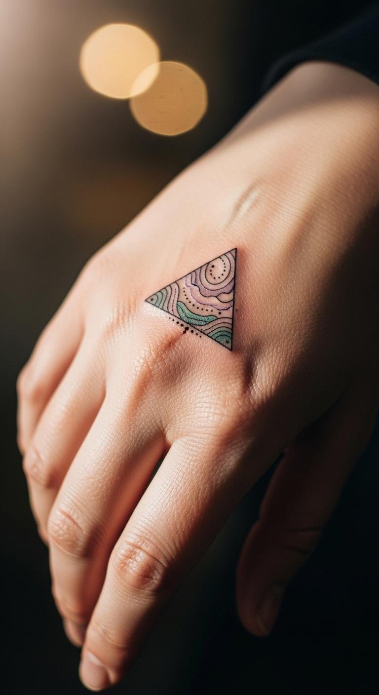 Wrist triangles are everyday. They fit wrist curves. Measure your space. Get quick sessions nearby. Use bracelets for mocks. Wrist spots are convenient. Keep it plain for budget. This enhances routines. Add a small twist. It’s practical and neat. Test with bands. Wrist tattoos are accessible. Make it functional. You’ll use it daily. Quick sketches assist. This design works.