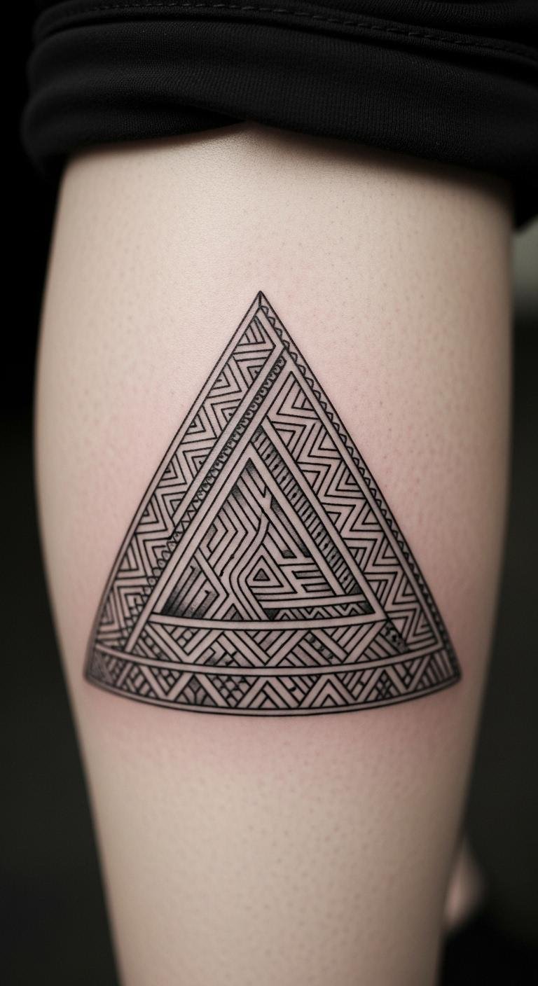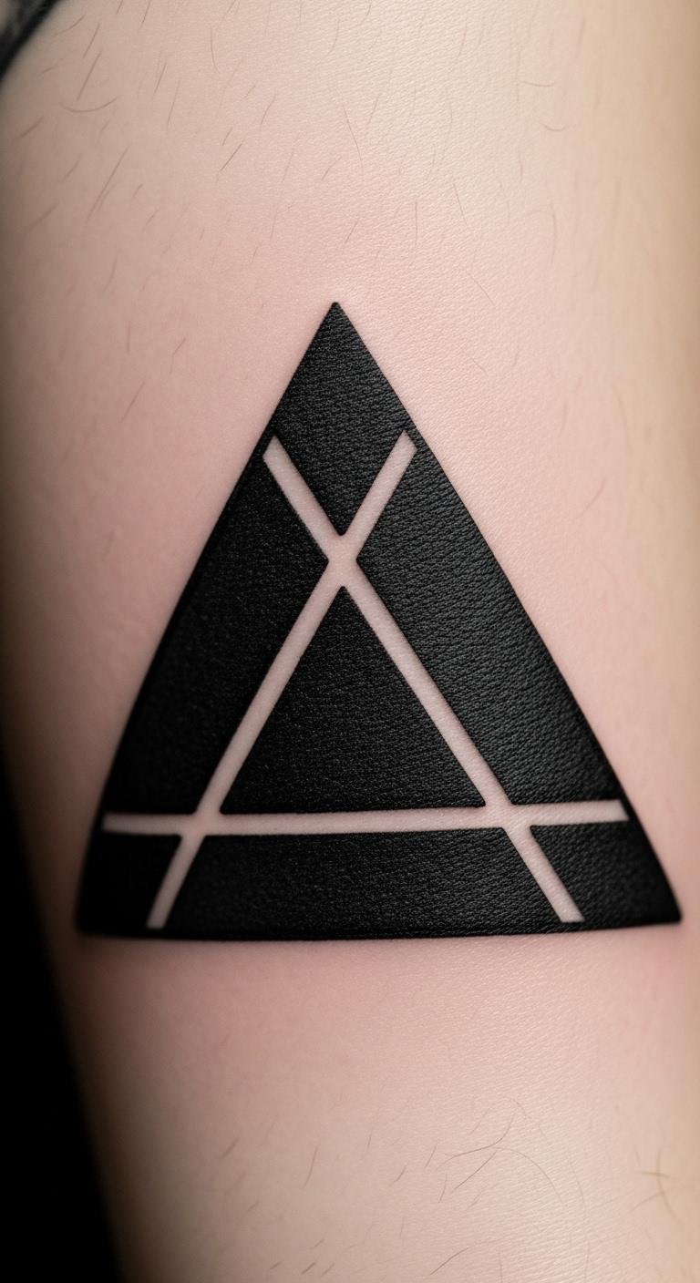 Bold black triangles make a statement. They stand out with solid ink. Sketch bold versions on paper. Find sales at tattoo events. Use black markers for home tests. Arm placement shows it off. Go big but budget-wise. This fits strong personalities. Add patterns inside the shape. It’s durable over time. Try temporary black tattoos. Arm designs heal straightforward. Make it your signature look. You’ll love the confidence boost. Community groups share tips. This idea grabs attention.