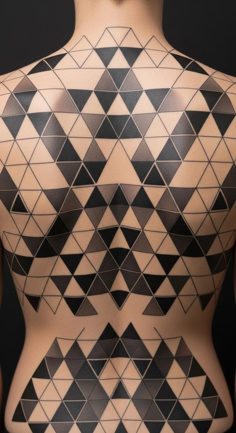 Symmetry in triangles creates order. They look put-together and calm. Use graph paper to plan yours. Check local shops for deals. Build a model with craft sticks. Place it on your back for impact. Keep it small to cut costs. This works for balanced themes. Add matching elements like circles. It’s great for precise folks. Trace designs with a pen first. Back spots show off in mirrors. Make adjustments for your body. You’ll feel centered with it. Free design software aids creation. This idea brings harmony.
