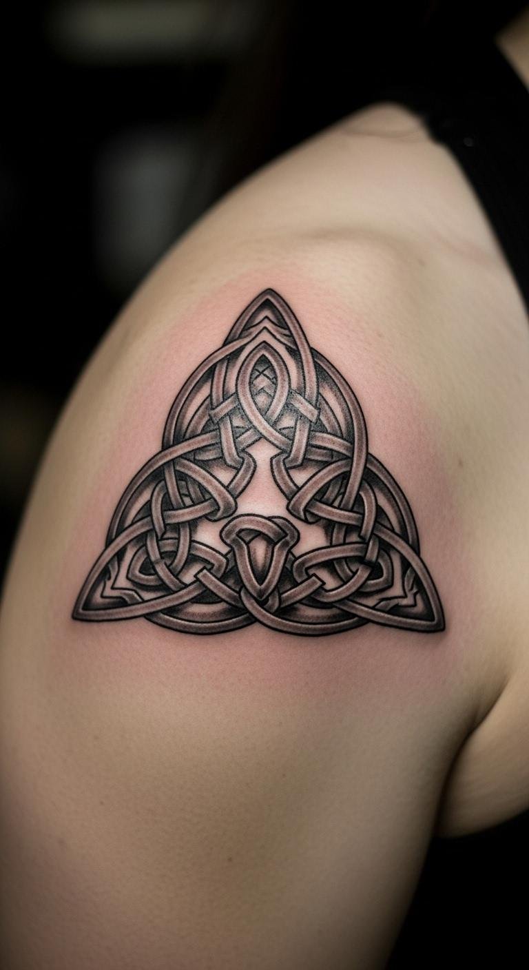 Celtic knots in triangles add heritage. They weave history into ink. Research simple knots online. Seek artists who specialize affordably. Craft knots with yarn at home. Shoulder spots offer coverage. Keep designs modest for cost. This honors family roots. Include personal symbols. It’s meaningful for stories. Use string to practice. Shoulder tattoos blend in clothes. Make it flow with your shape. You’ll connect to the past. Free tutorials help design. This idea tells a tale.