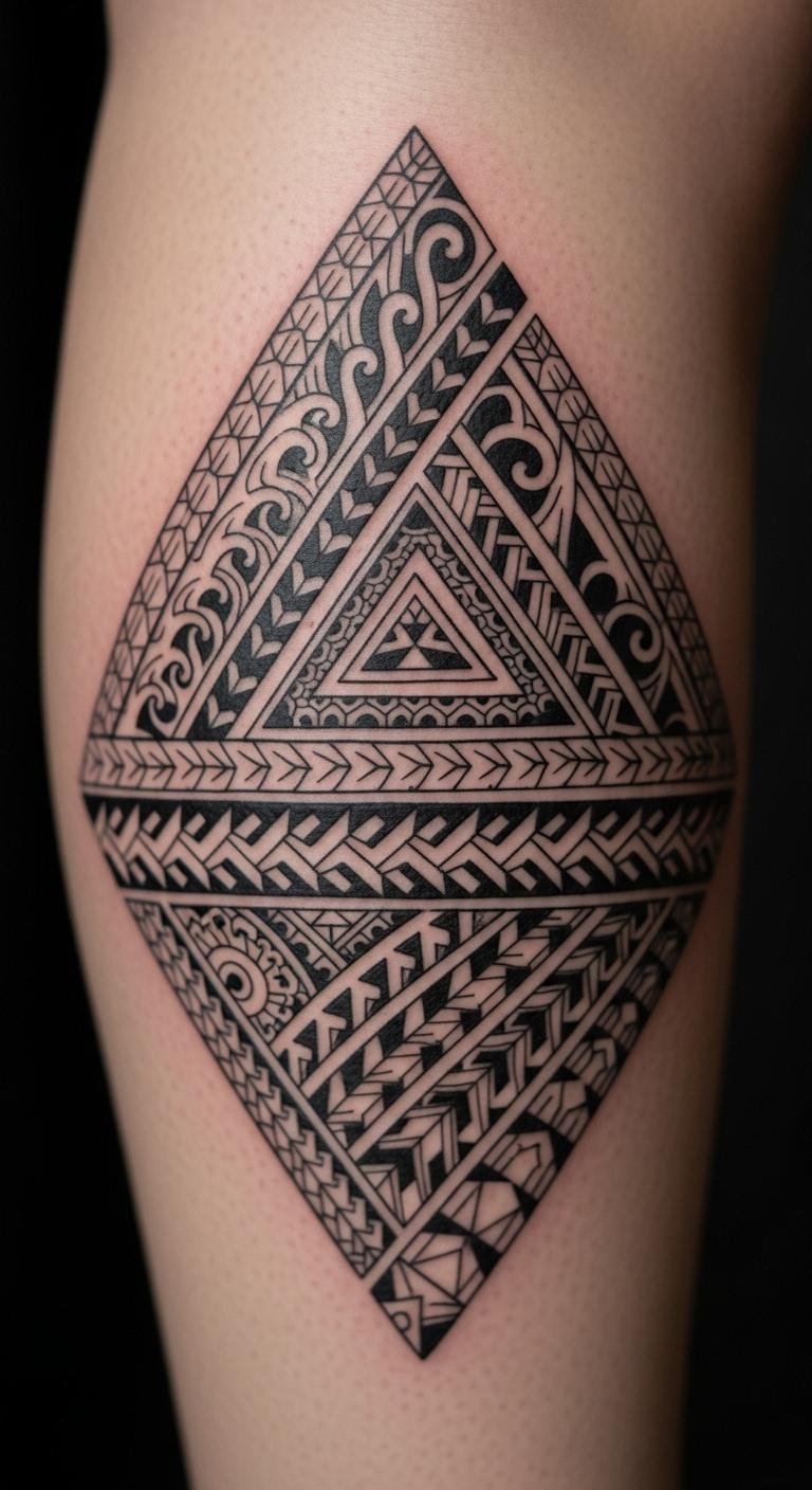 Polynesian triangles bring adventure. They echo ocean themes. Draw waves around them. Check for cultural artists at low rates. Use beach sand art for ideas. Leg placement allows for size. Opt for basic patterns to save. This captures travel spirit. Add fish hooks for depth. It’s ideal for explorers. Test with body paint. Leg tattoos wear well. Make it unique to you. You’ll feel the journey. Online resources offer guidance. This design inspires.