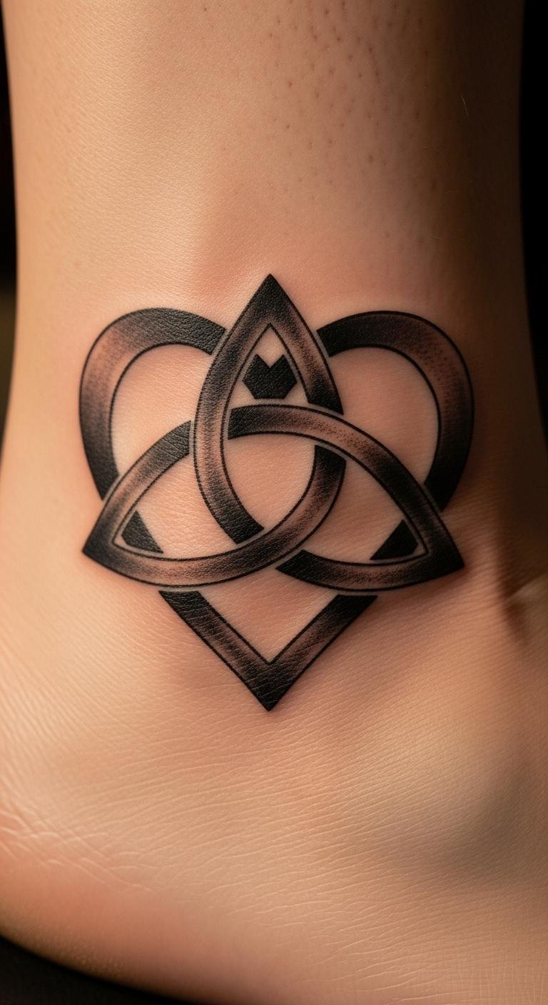 Pairing a Trinity Knot with a heart adds a romantic vibe. The loops now stand for endless love and connection. Place it on your chest for a personal touch. Draw inspiration from jewelry patterns you already own. Try a DIY sketch on paper using a heart stencil from craft stores. This keeps expenses low, around $5 for supplies. Find an affordable artist online; many charge by the hour for custom tweaks. Bold this: make it yours. Use phone apps to overlay designs on photos of your body. The result? A tattoo that speaks volumes without saying a word.