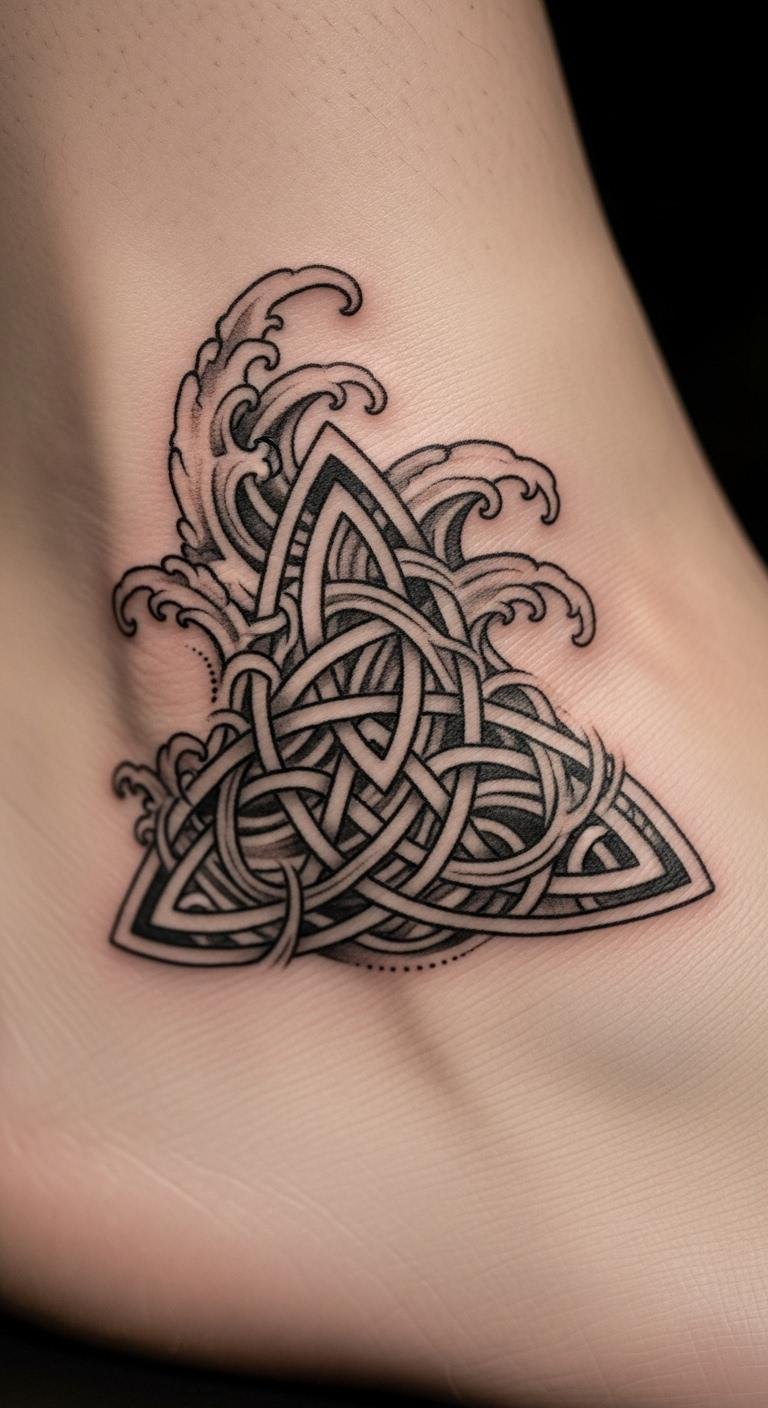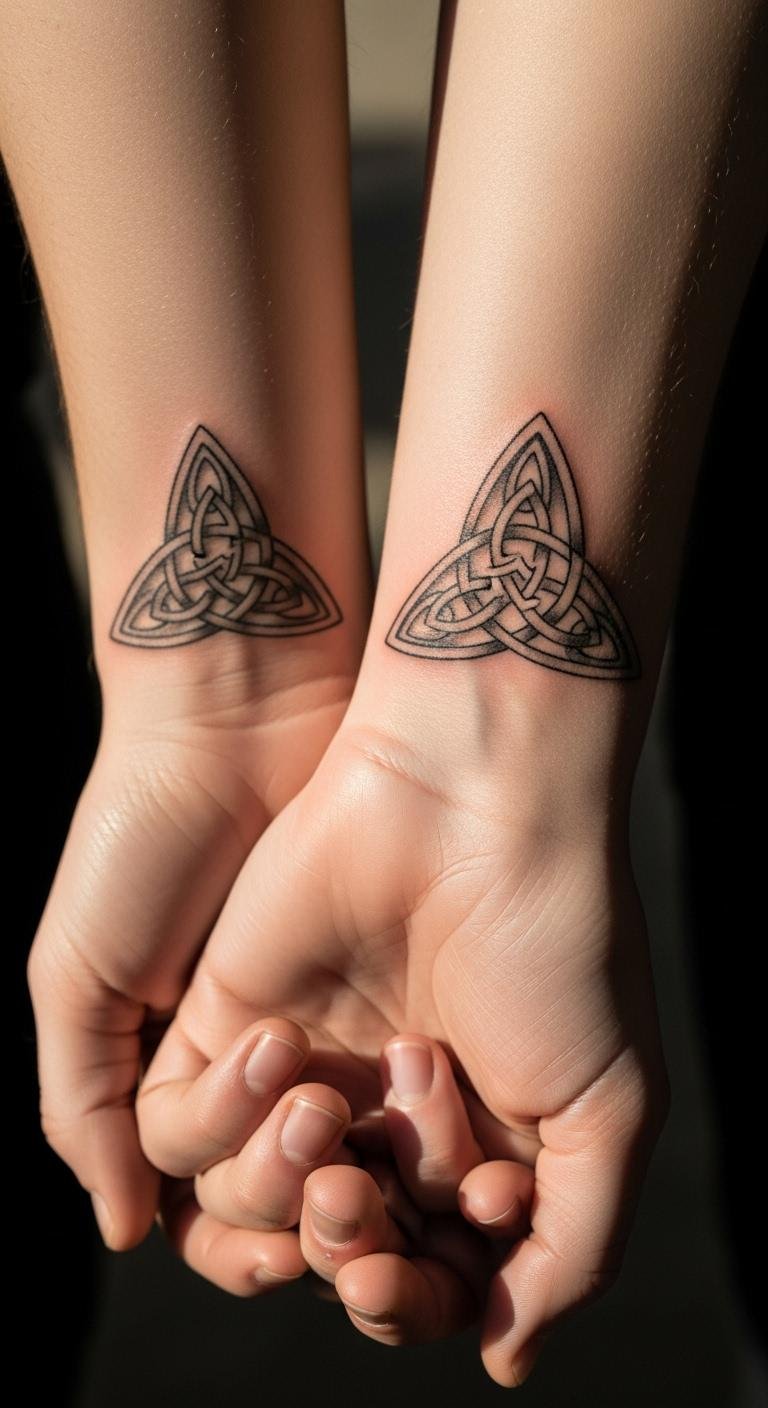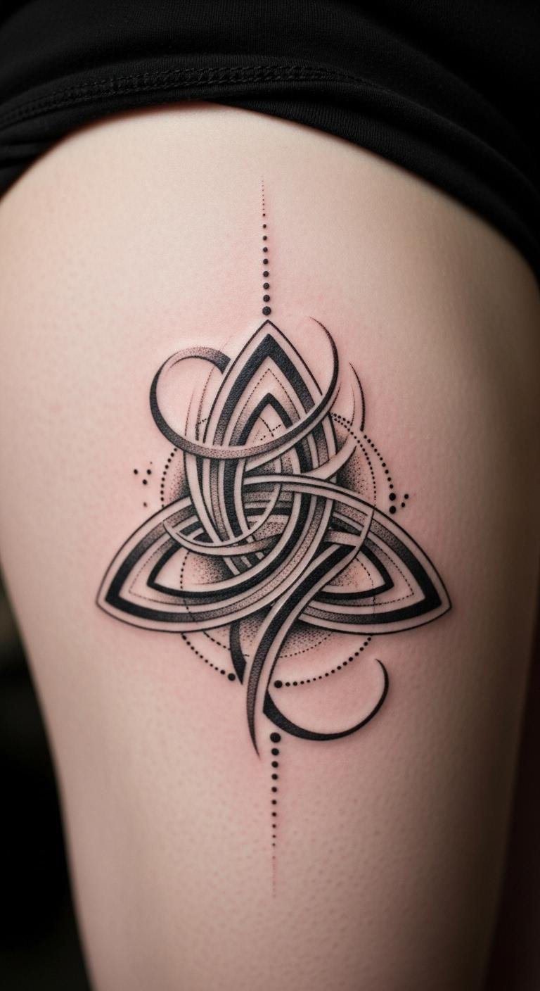 A classic Trinity Knot keeps things straightforward and timeless. Think three loops woven together for unity and eternity. You get a design that fits any spot on your body. Start small on your wrist for a test run. Use online tattoo templates to sketch ideas at home with a pen and paper. This way, you save on early costs. Pick a local artist who specializes in line work; sessions often cost under $100 for basics. Add personal flair by choosing ink colors from your wardrobe. Bold this: keep it meaningful. Experiment with free apps like Procreate for digital mock-ups before committing. No need for extras—just the knot tells your story.