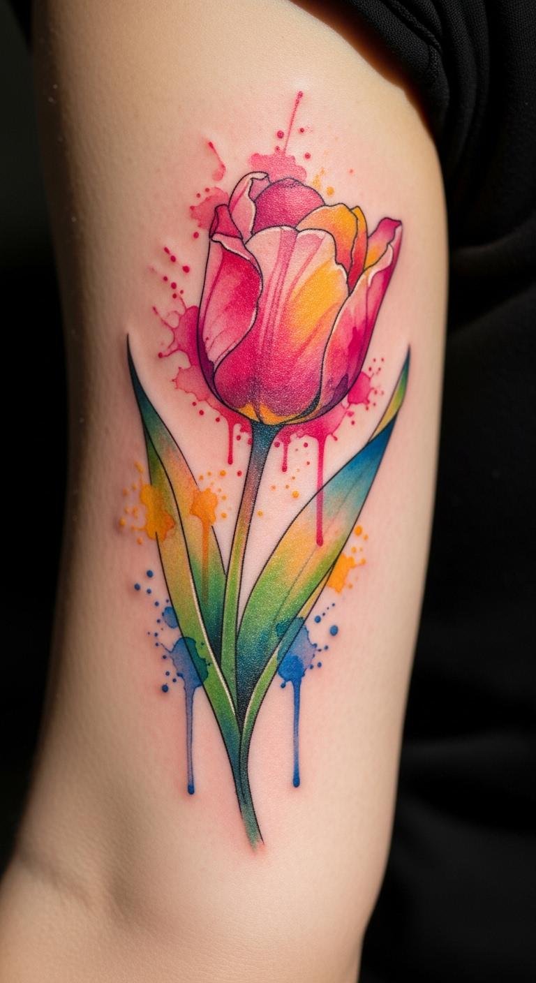 Watercolor adds flow. Mimic paint styles. Sketch soft tulips. Use water brushes. Spot on arms. Artists charge $100. Blend at home. This is artistic. Start testing.