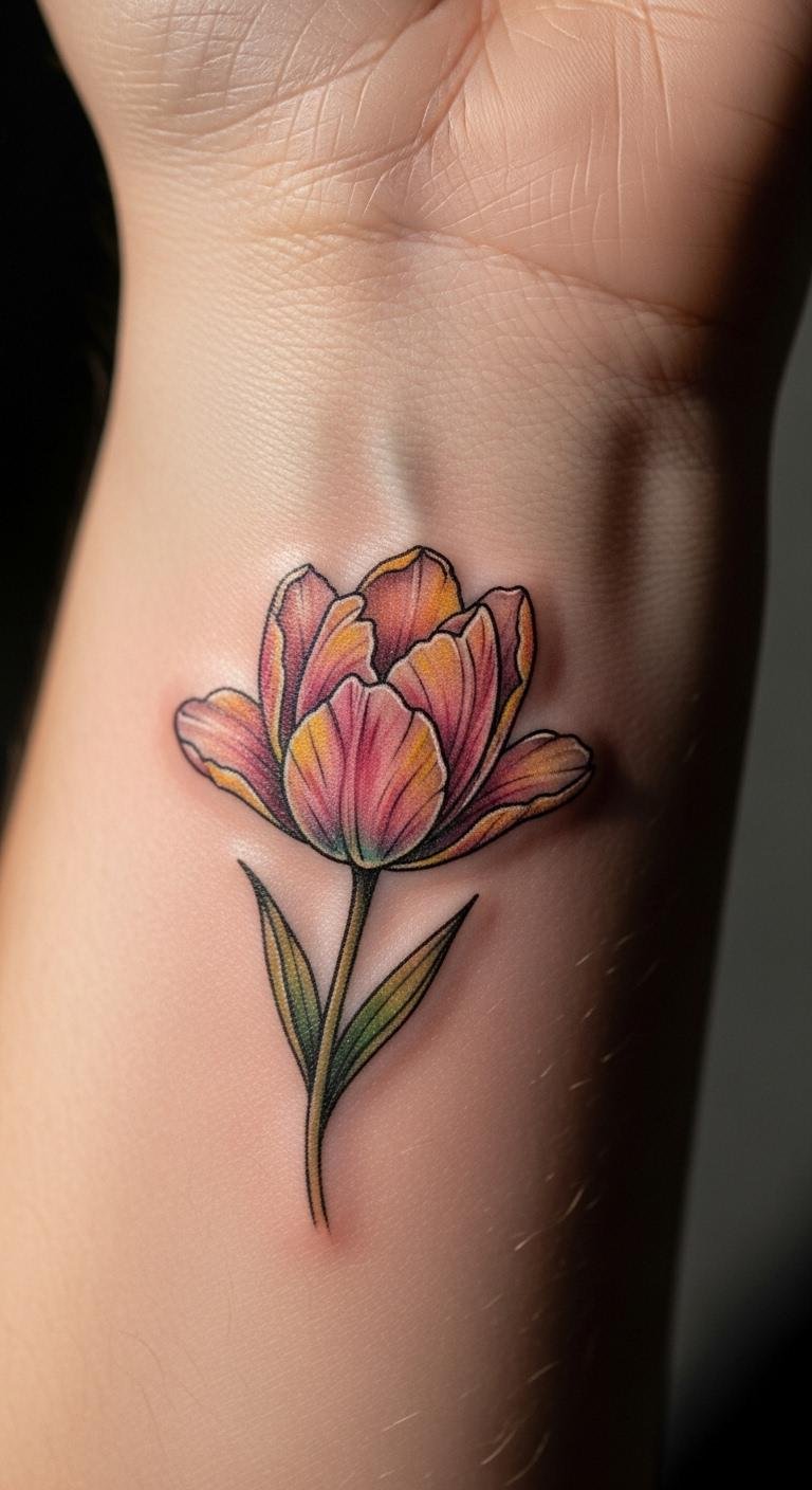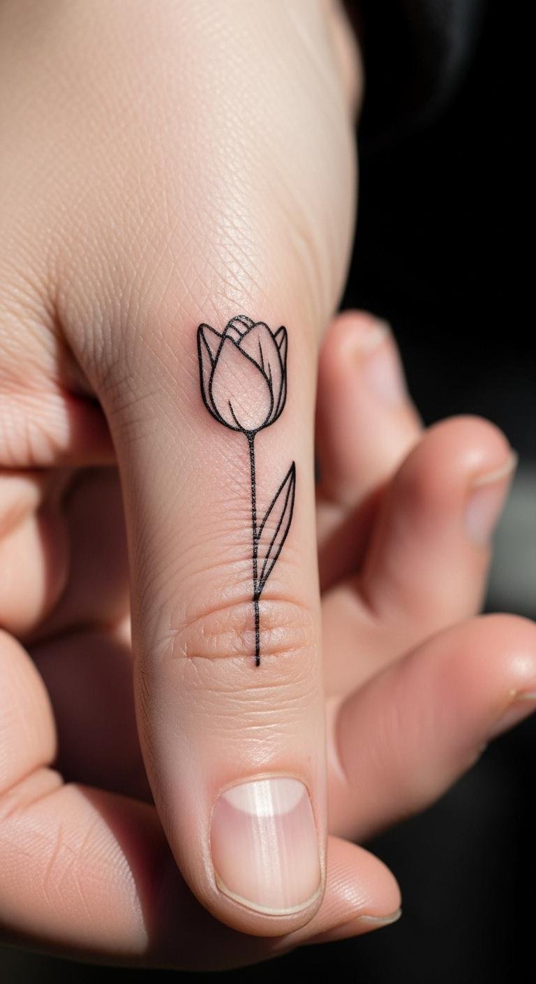 Go for less with minimalist tattoos. Draw a one-line tulip at home. Grab a pen and paper. Trace a basic flower form. Pick spots like behind the ear. It hides well yet shows style. Search for artists who do fine lines. Prices start at $50. Watch tutorials on YouTube for ideas. Care for it by washing gently. This trend suits busy days. Try it as your first tattoo. Results last with simple upkeep.