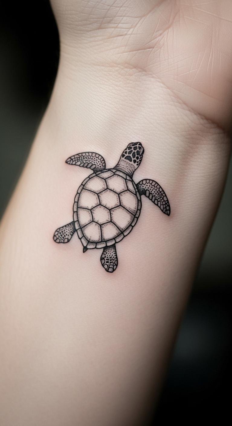 Minimalist tattoos keep things simple and elegant. A tiny turtle fits on your wrist or ankle. It stands for wisdom in a subtle way. Begin with a basic outline on paper. Use a fine-tip pen to experiment at home. This costs nothing and helps you decide. Add a small dot for the eye to personalize it. Temporary stickers from a dollar store work great for testing. Choose a spot that’s easy to hide or show. Many artists offer these for low prices. Make it unique by adding a tiny wave. You’ll have a meaningful design without much fuss. Practice on your skin with washable markers. It’s a straightforward way to start.