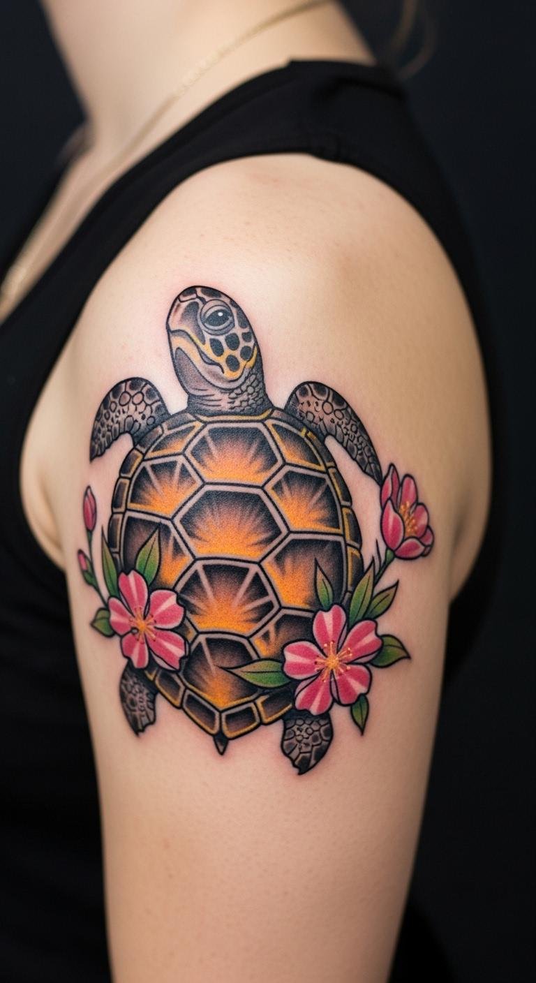 Floral turtles blend beauty. Sketch flowers around. Add petals. Put on shoulder. Apps aid creation. Use stickers. Seek deals. Personalize growth. This design flourishes. Draw variations. It’s lovely.