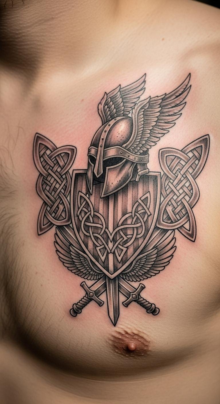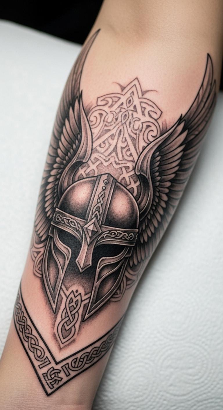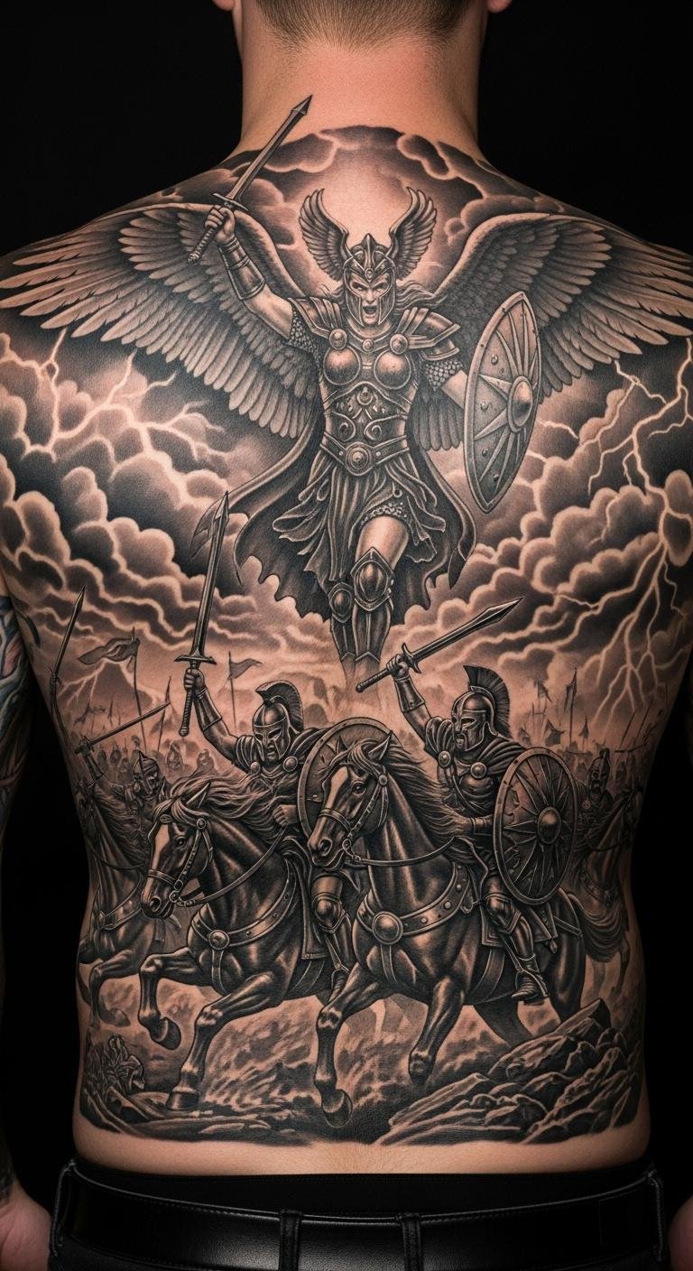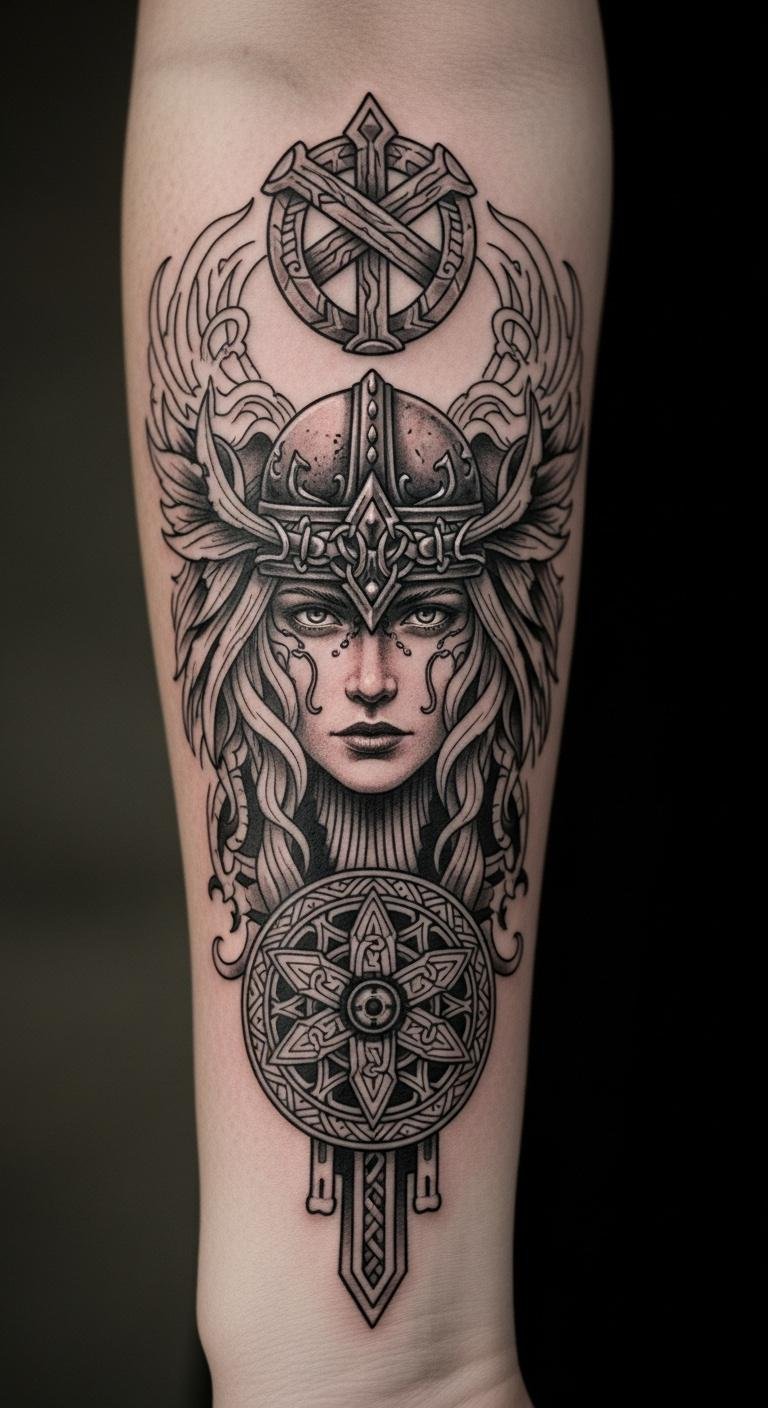 Turn your arm into a Valkyrie sleeve for full coverage. Start with arm sketches using markers. Look for artists offering sleeve packages. Add sections over time to save money. Place weapons along the length for flow. Use phone filters to visualize. This design suits sleeves well. Protect with long sleeves from your wardrobe. Build it gradually for affordability.