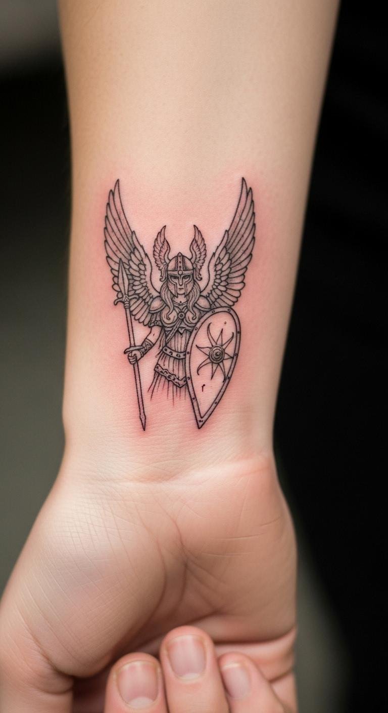 Go small with a wrist Valkyrie. Use tiny lines for impact. Sketch on your wrist with pens. Find quick, cheap options. Add a single element. This spot is versatile. Heal with basic care.