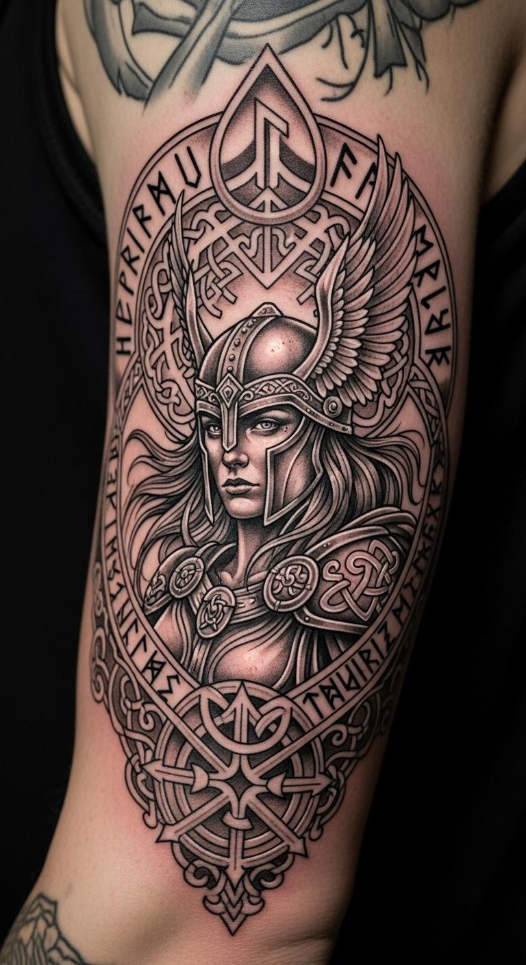 Combine Valkyrie with Norse symbols for deeper meaning. Think runes around a warrior figure. Draw symbols on paper using free guides. Place it on your arm for daily reminders. Look for package deals at local studios. Add one symbol at a time to keep it simple. Use string to layout designs on your skin. Choose black ink for affordability. This idea fits history buffs. Test with temporary tattoos first.
