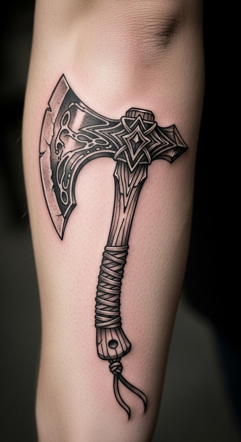 The Viking axe cuts through challenges. It’s for warriors within. Think about your battles. Place on your leg for stability. Draw axes from historical images. Etch on wood first. Look for quick ink sessions. Go for a basic shape. Use straight lines. Keep it covered initially. The axe sharpens resolve. Add a handle wrap for you. It’s a straightforward tool.