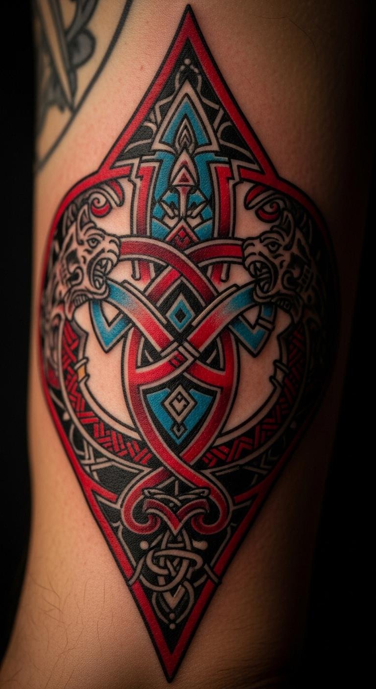 Colorful designs bring Norse vibrancy. They add pop to traditions. Think about your colors. Tattoo on your leg for show. Mix paints for ideas. Draw with crayons. Look for color specials. Choose one hue. Blend carefully. Protect from fade. Colors brighten your ink. Personalize with shades. It’s a vivid choice.