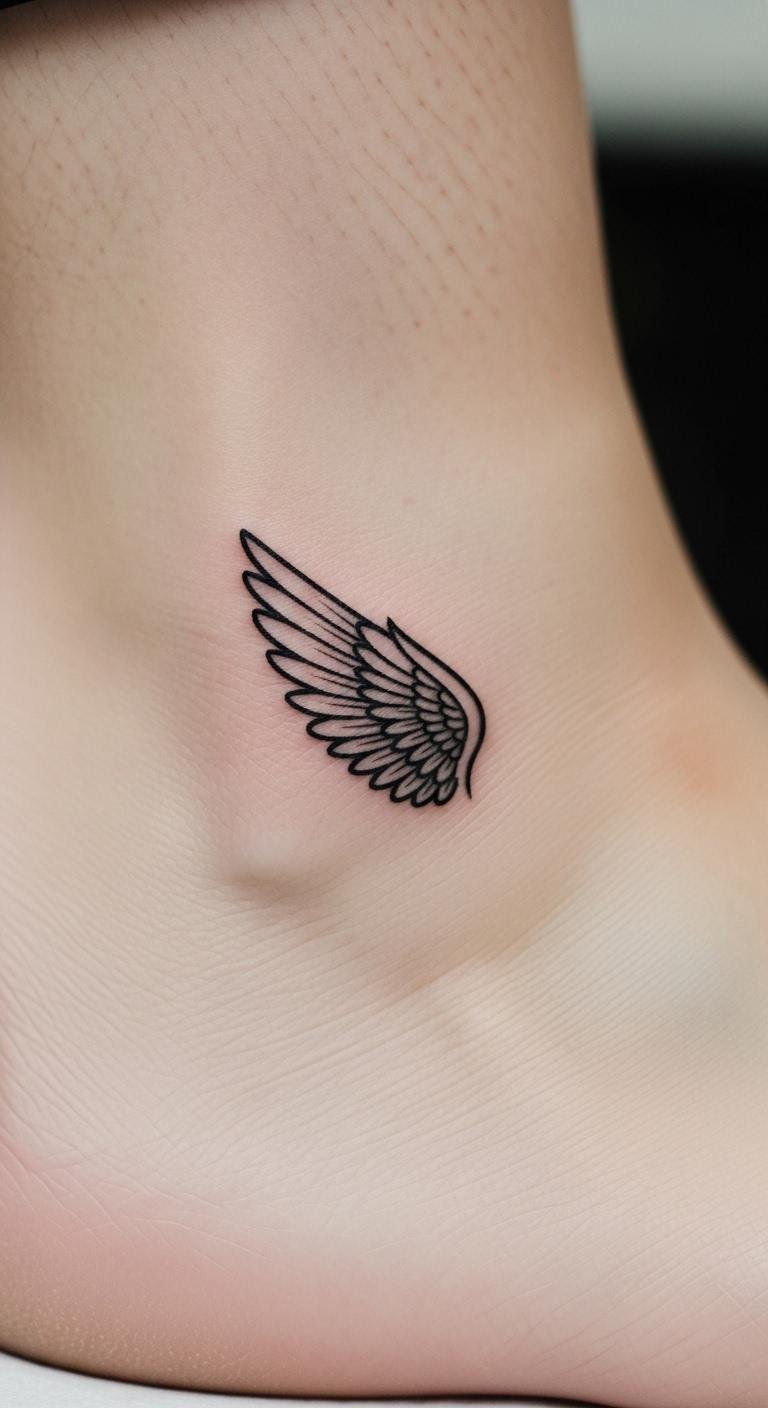 Sleek and modern for a fresh vibe. Modern minimalist wings use clean cuts. Place on your ankle. Prices start at $80. Test with modern sketches. Access free contemporary ideas. Keep it protected. This design fits trends. Go with black for savings. It’s stylish and easy.