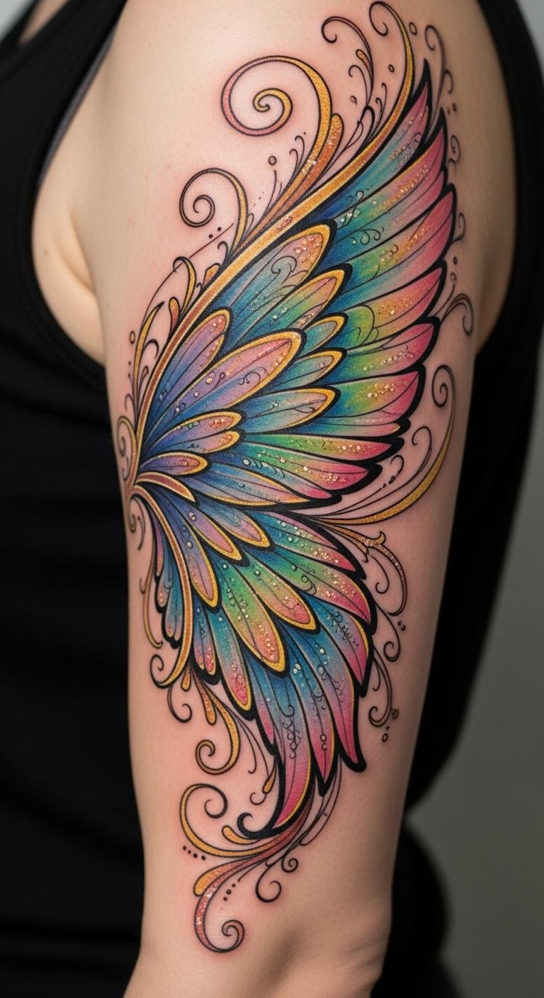 Colorful Wing Tattoo