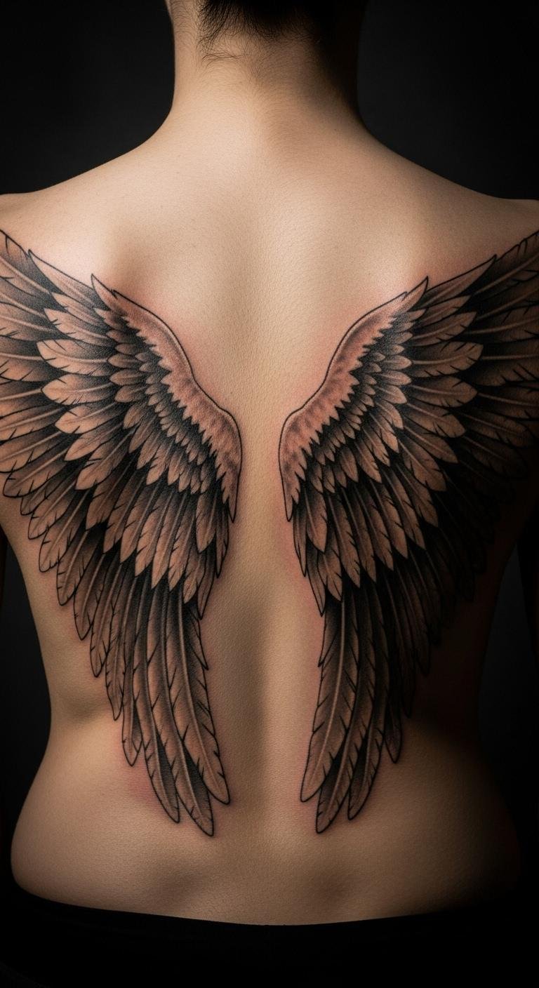 Large wings on your back make a statement. Back wing art covers more space for impact. Design it symmetrically. Prices could reach $400. Use a large mirror to plan at home. Find free back tattoo inspirations. Wear loose clothes for healing. This style boosts confidence. Opt for outlines to reduce costs. It’s ideal for bold expressions.
