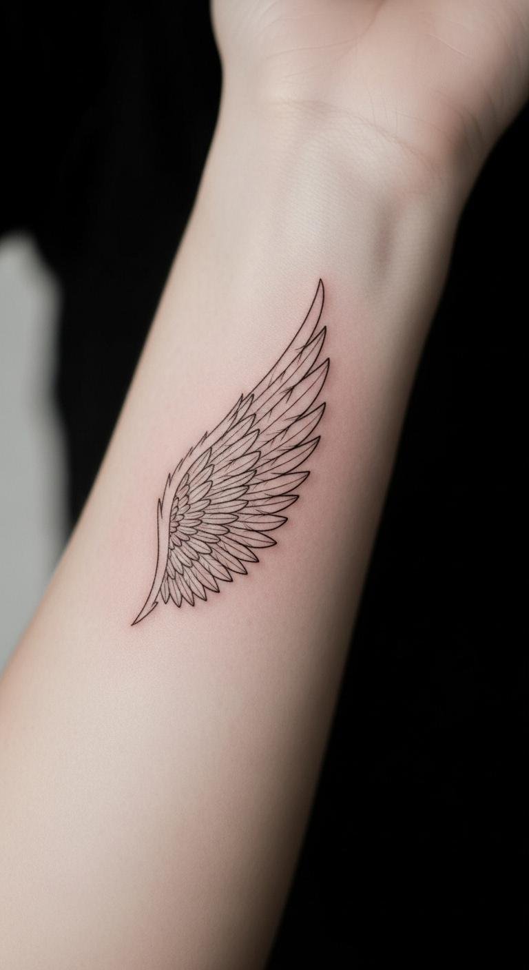 Choose your inner arm for easy hide-and-show. Inner forearm wing tattoos offer control and style. Select a small design here. Costs start at $80. Trace outlines on your arm with a marker. Download free placement guides. Wash gently to aid healing. This spot works for daily wear. Go small to save money. It’s practical for first-timers.