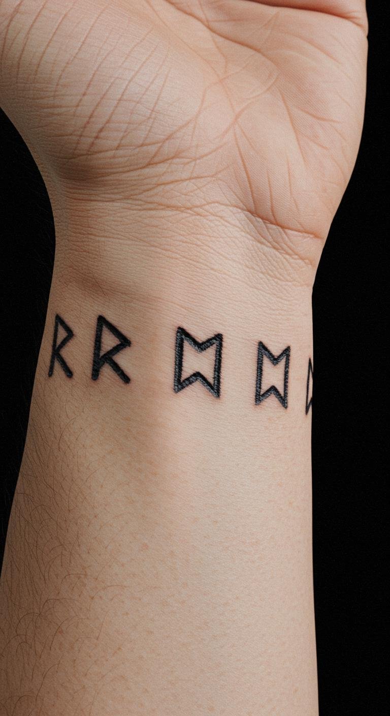 Use runes for spiritual guidance on your wrist. This design draws from old symbols. Pick ones that resonate with you. Research online for free. Artists adapt for $60. Carve mockups in soap. Keep a journal of meanings. This tattoo adds inner peace.
