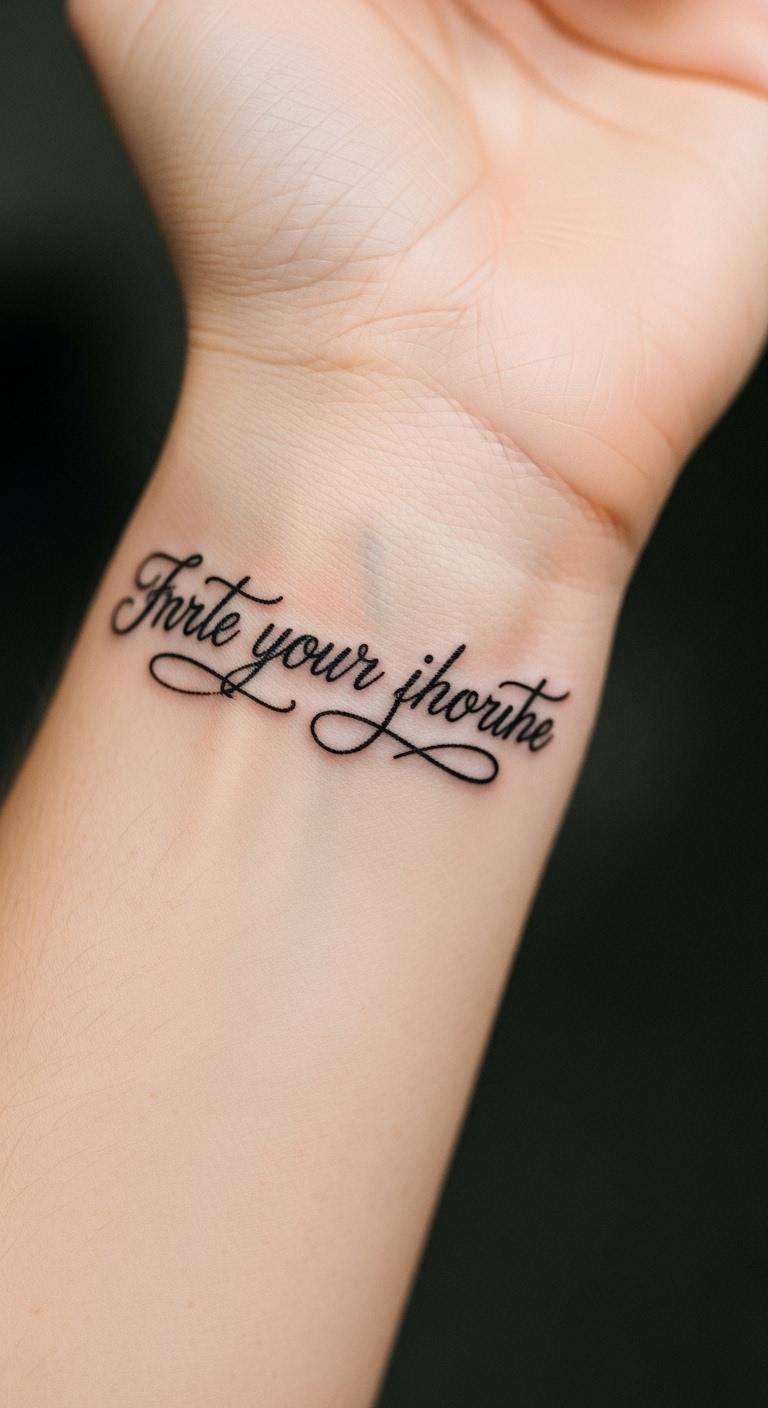 A short quote in script adds motivation to your wrist.